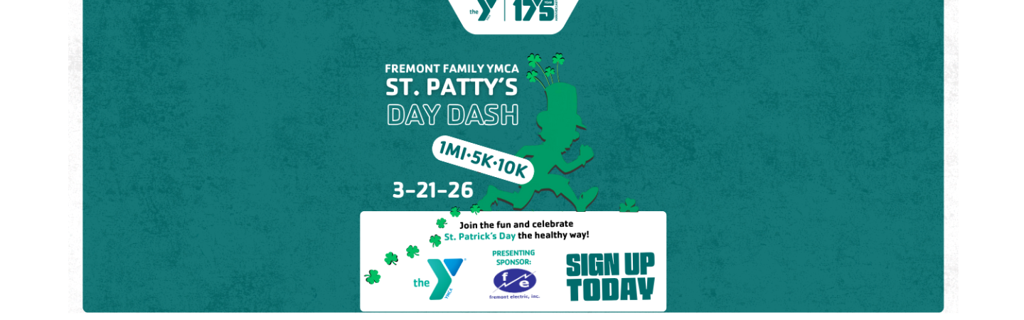 Fremont Family YMCA's St. Patty's Day Dash sponsored by Fremont Electric Inc., is more than just a race—it's a chance to bring good fortune to those who need it most. This March, every step you take supports youth programs, childcare services, senior wellness initiatives, and financial assistance so that everyone can access the Y, regardless of their ability to pay.